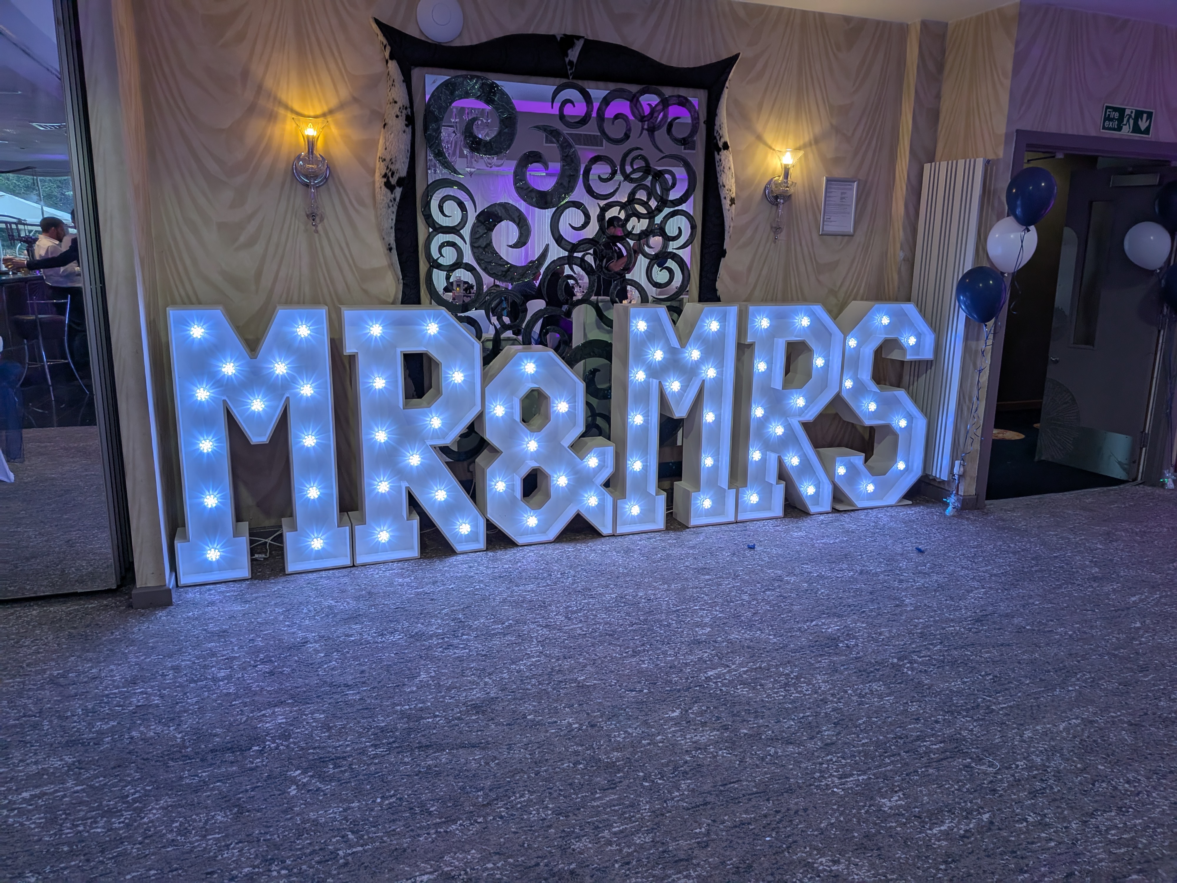 Disctilldawn Events offers a full range of light-up LOVE letters, MR & MRS letters, custom initial letters and milestone numbers across London, Berkshire, Buckinghamshire, Hertfordshire, Surrey and Bedfordshire. Bundle with your DJ, photo booth or 360 booth and we’ll discount the package. Get in touch with your initials, date and venue and we’ll come back with availability and pricing.
